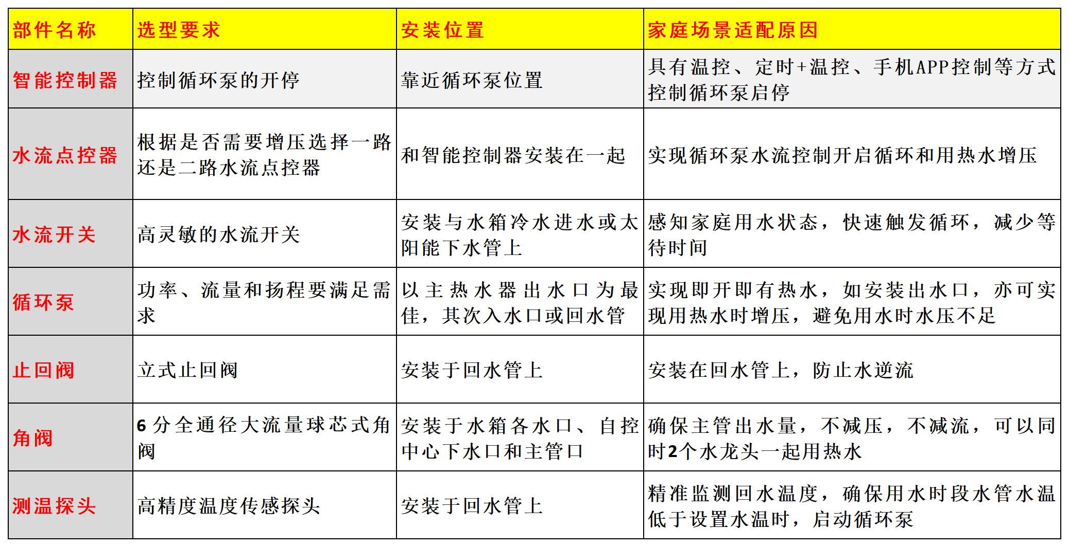3、節能性突出:優先使用儲水式熱水器(空氣能、太陽能機型能耗低),燃氣熱水器僅輔助加熱,相比單一燃氣熱水器系統,可降低 60% 左右燃氣消耗;循環泵定時運行,避免全天循環浪費電能,長期使用減少家庭能源支出。